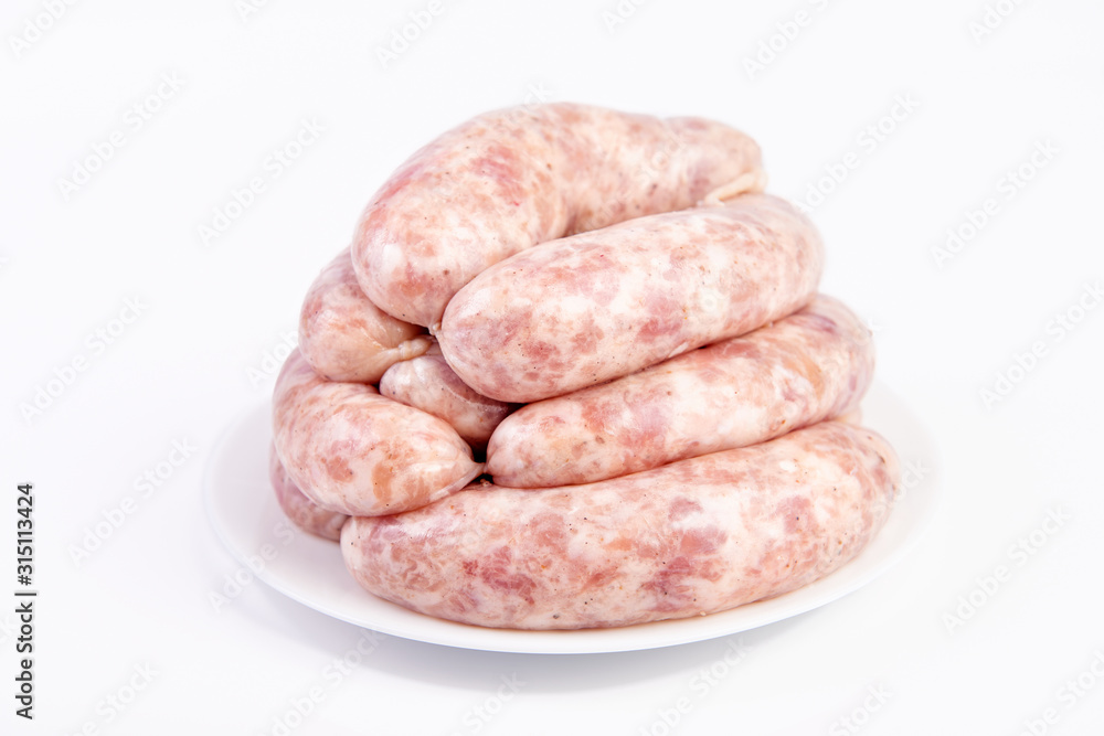 Raw Sausages, Oktoberfest Sausages close-up, isolated on white background.