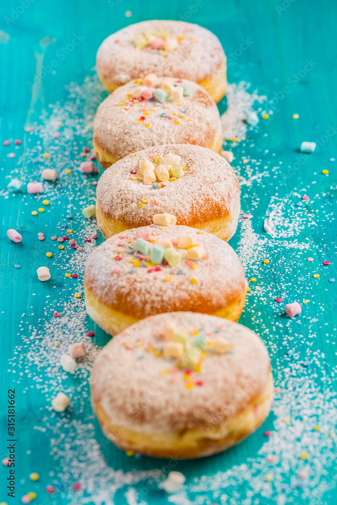 Carnival powdered sugar raised donuts - German Berliner donuts
