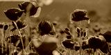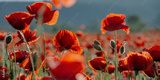 blooming field of red poppy flowers at sunset. abstract nature blur. nature scenery with blurred background in evening light