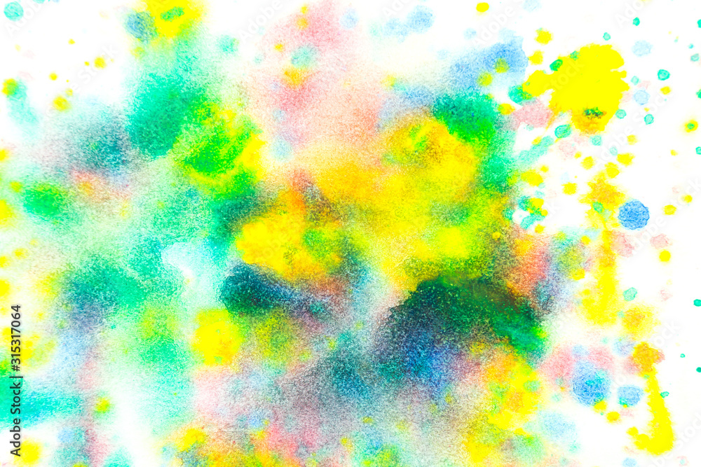 Multi color watercolor on white background.The color splashing in the paper.It is a hand drawn. For text, element for decoration.