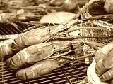Street food Grilled shrimp bbq seafood Food stall Bangkok Thailand