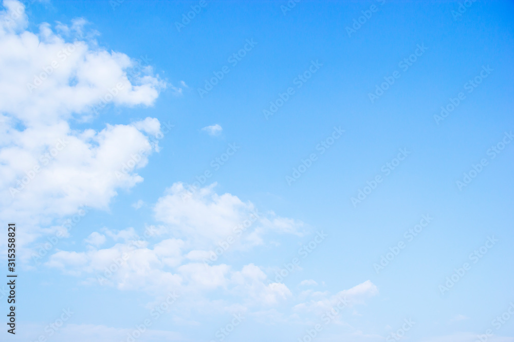 Blue sky background and white clouds soft focus, and copy space