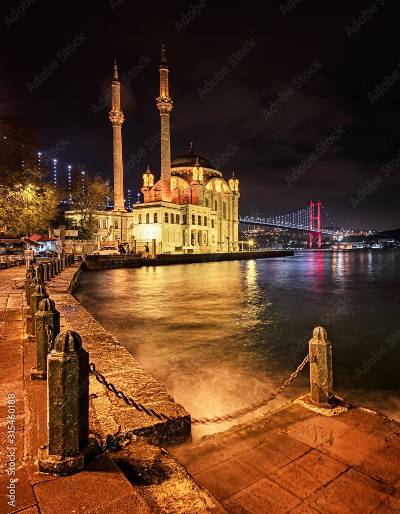 Amazing sunrise at Ortakoy mosque in Istanbul, Turkey