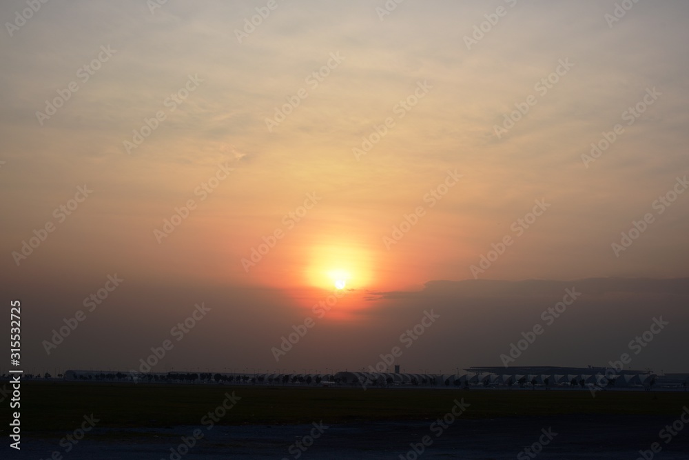 Modern airport at sunset time