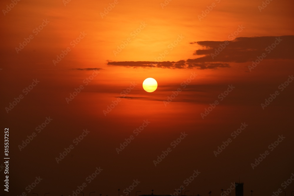 Sunset background and sun beam on the open seaGold sunset light on the ocean.