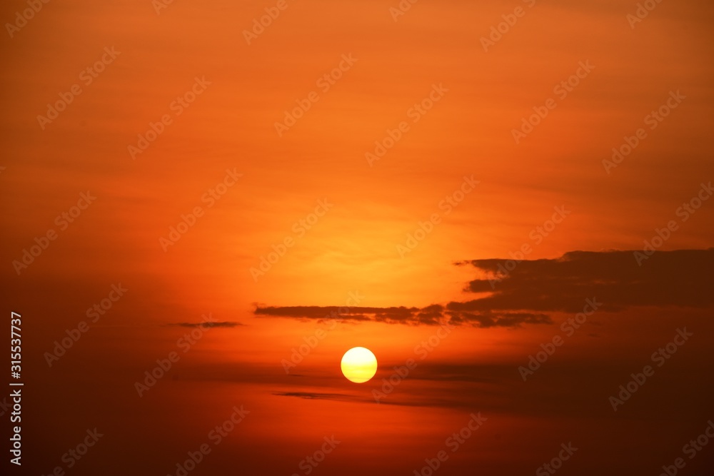 Sunset background and sun beam on the open seaGold sunset light on the ocean.