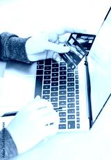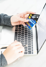 Close up of female hands holding credit card making online payment