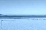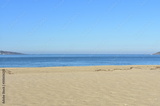 Beach with blue sea and clear sky with seagulls. Muxia, Coruña, Galicia, Spain.