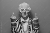 Funny grandmother portraits. Senior old woman dressing elegant for a special event. granny fashion model on colored backgrounds
