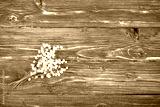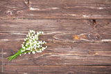 Wonderful fragrant white flowers with a delicate scent. Lilies of the valley on a brown rustic wooden background