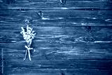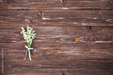 Wonderful fragrant white flowers with a delicate scent. Beautiful lily of the valley bouquet on wooden background, top view. Space for text