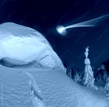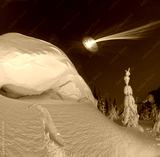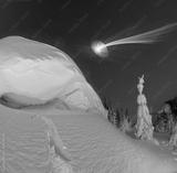 Snowy cornice on the mountain at night