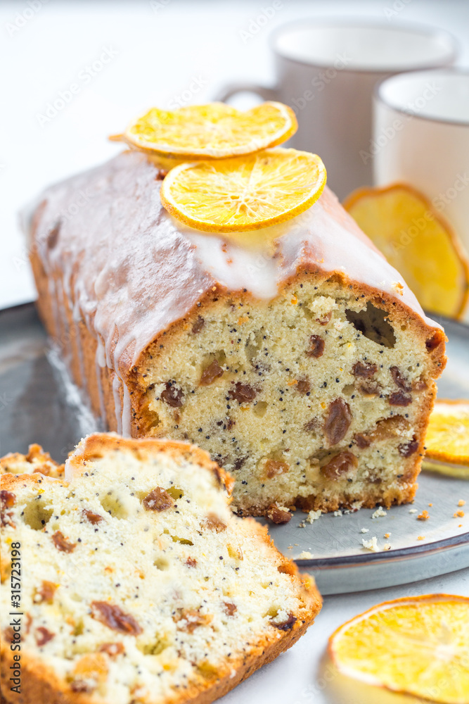 Plumcake with raisins, orange zest and poppy seed. Homemade.