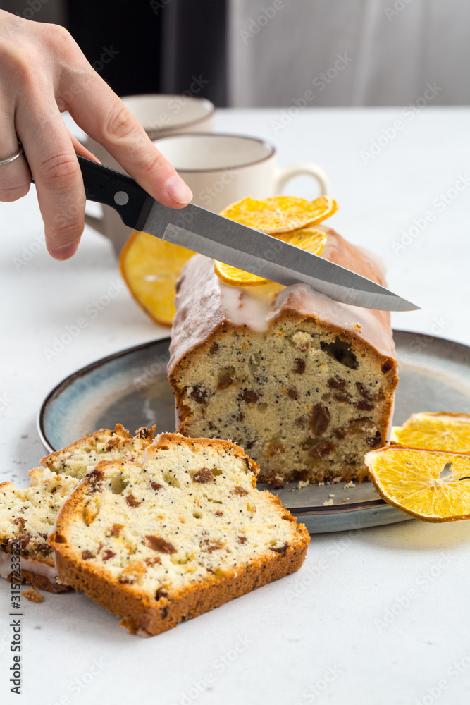 Plumcake with raisins, orange zest and poppy seed. Homemade.