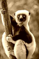 Verreaux's sifaka close up (Propithecus verreauxi), Andasibe National Park, Madagascar