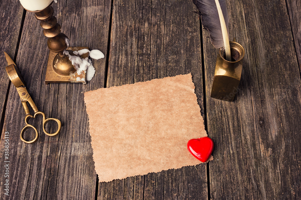 Valentine's Day postcard with red hearts on vintage paper background with copyspace.