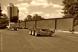 A huge steel beam for bridge construction on a truck