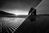 Awesome dark sand after the tide. Location Hvitserkur, Iceland, Europe. Images before and after.