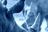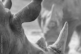 Big african animals close up. Head of rhino, back side view.