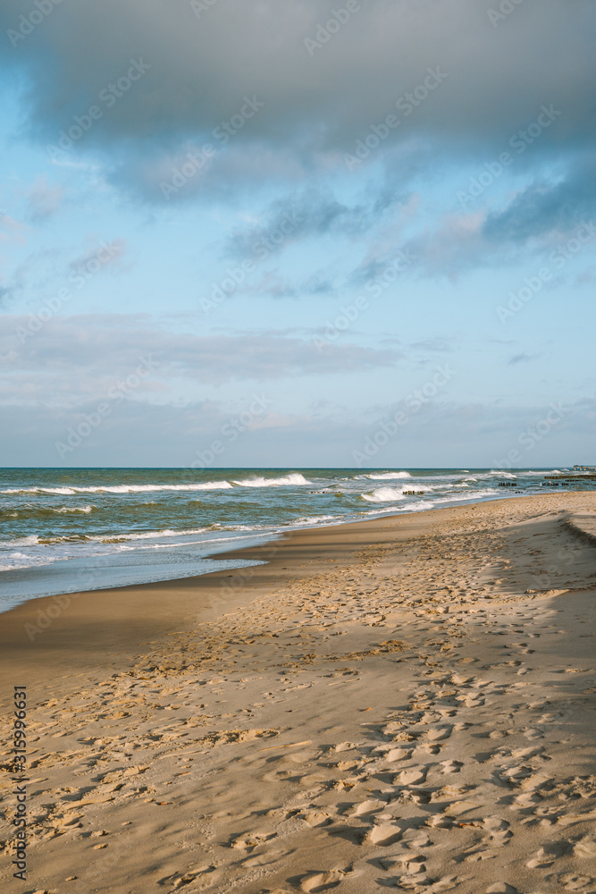 Baltic sea coast beach at sunset