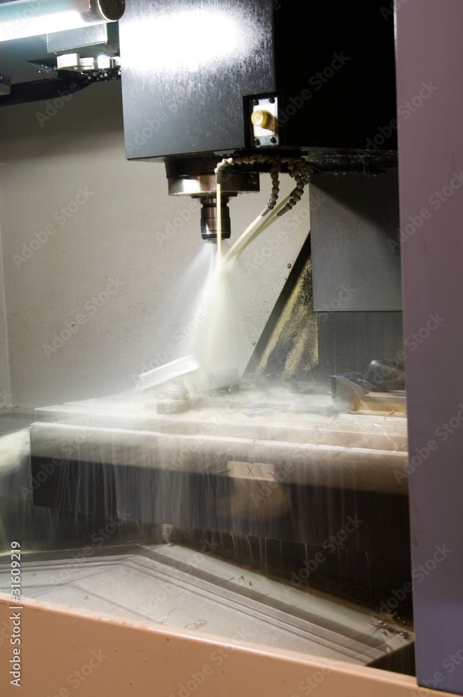 CNC machine cutting metal.