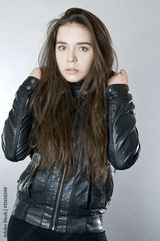 девушка в кожаной куртке (студийный портрет)