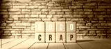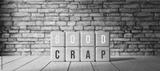 cubes with the words GOOD and CRAP in front of a brick wall on wooden floor