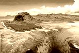 Aerial panoramic view of Mauritius island - Detail of Le Morne Brabant mountain with underwater waterfall perspective optic illusion - Wanderlust and travel concept with nature wonders on vivid filter