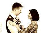 Man hugs and loving looks at the girl