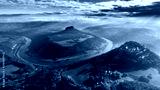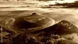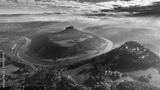 Konigstein Fortress - a Saxon mountain fortress near the town of Konigstein, located on a plateau rising 247 meters above the Elbe level, bathed in fog, aerial view