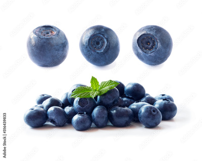 Bilberries isolated. Fresh raw berries isolated on white background. Collection. Blueberries on white background. Set of blueberries from different angles on white.