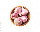Garlic isolated on white background. Garlic Isolated on white background Clipping Path. Garlic press and garlic on white background. Top view.