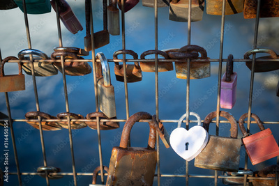 White Heart Padlock amidst Padlocks on Fence on the Waterfront in Auckland New Zealand