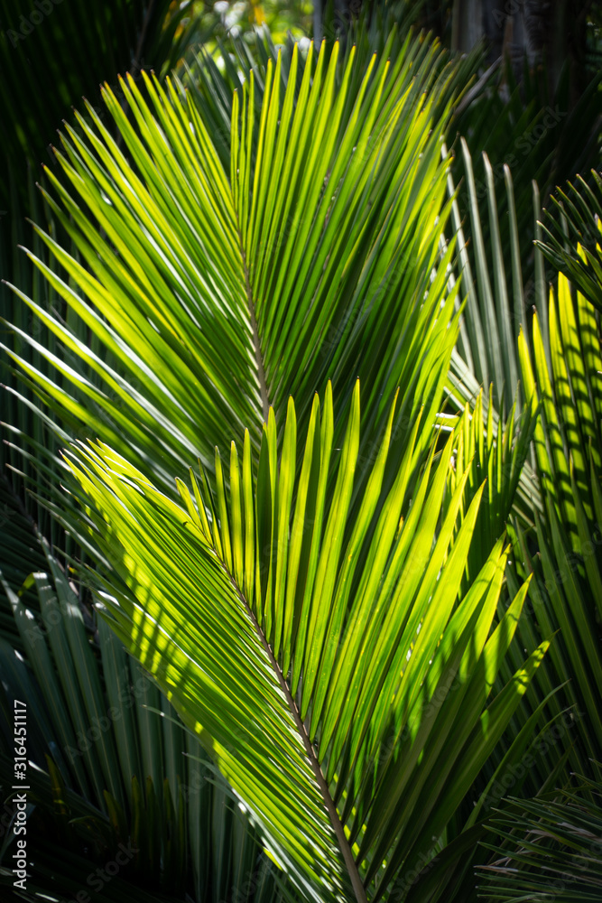 Fronds of Palm Trees in Sunlight on a Sunny Day Backlight