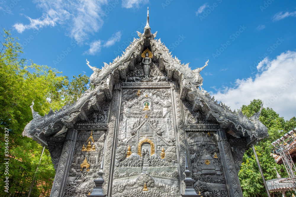Beautiful details of silver Viharn in Wat Si Suphan temple the first and only one silver temple in the world located in Chiang Mai province of Thailand.
