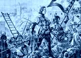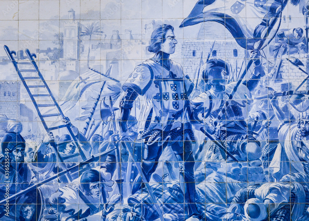 Wall decorated with amazing blue portuguese tile in Porto, Portugal.