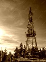 Radio Mast on Mountain top Jaworzyna Krynicka at blue sky background, Poland.