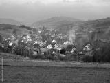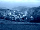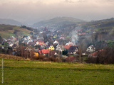 Village Przysietnica in late autumn. Beskid Sadecki Mountains, Poland.