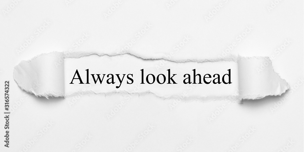 Always look ahead on white torn paper