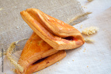 Puff pastry stuffed on a tablecloth