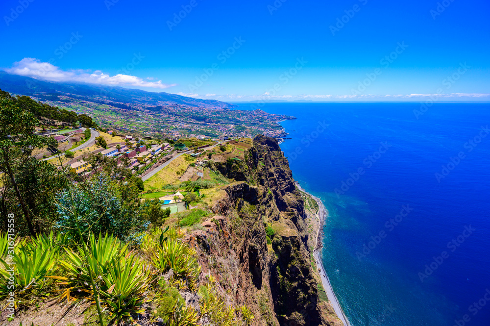 Amazing panorama view from Cabo Girao cliff close to Camara de Lobos on Madeira island, Portugal