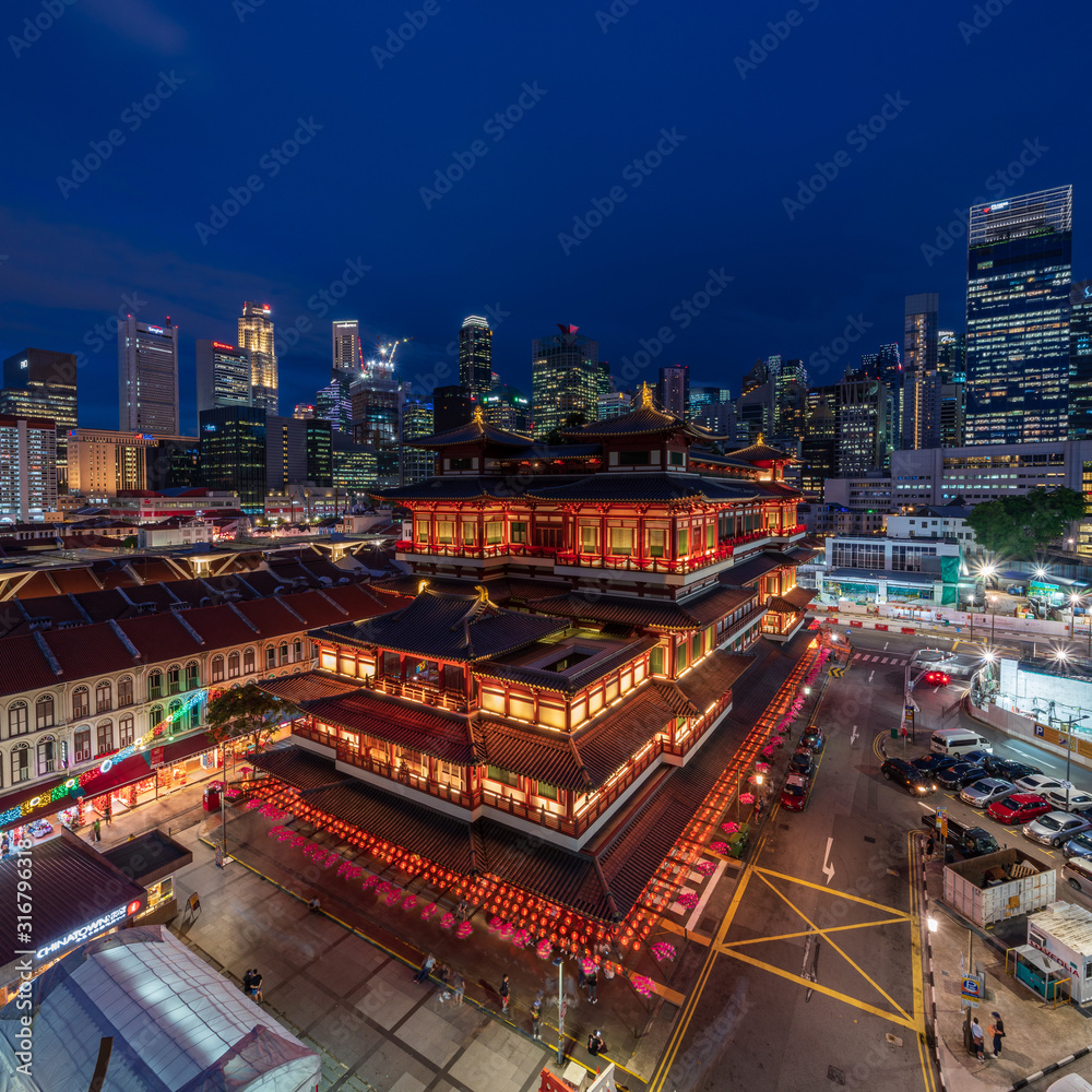 Bird view of Buddha Tooth Relic Temple & Museum at night