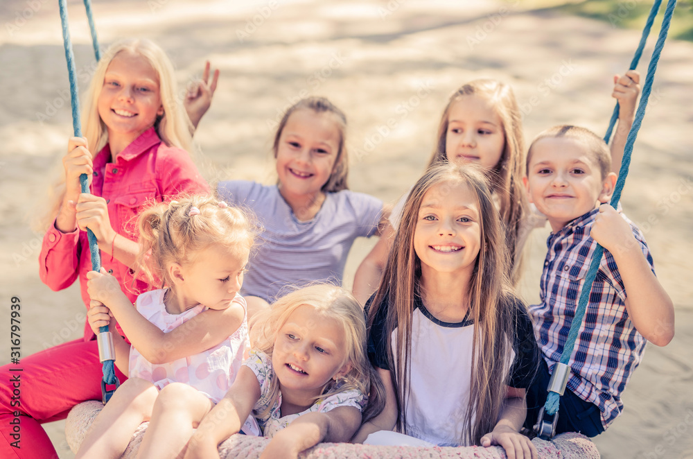 Kids sitting together on the swing