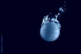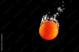 Cherry tomatoes falling into water at black background