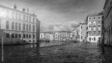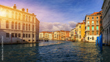 Grand Canal with gondolas in Venice, Italy. Sunset view of Venice Grand Canal. Architecture and landmarks of Venice. Venice postcard