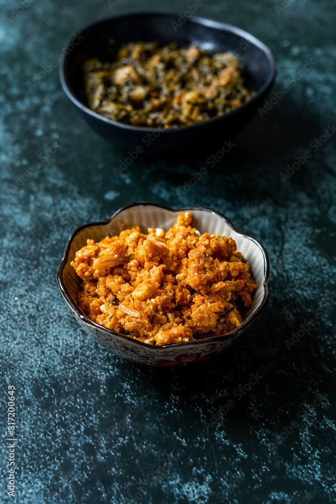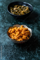 Traditional Indian Dessert Gajar ka halwa / Halva with Spinach Lamb Palak.
