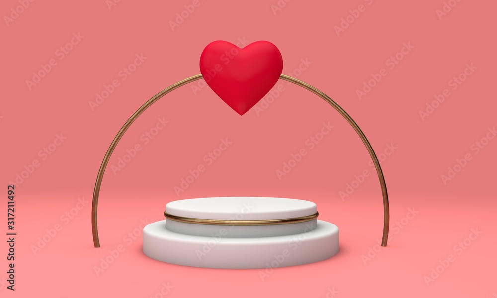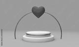 Romantic love interior podium stand. Valenine's Day platform. 3D Rendering