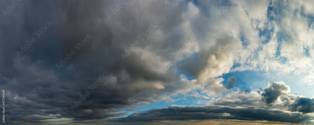 Fantastic dark thunderclouds, sky panorama
