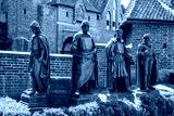 Statues of the major Teutonic Order great masters at the Middle Castle fortress inner courtyard of the Medieval Teutonic Castle in Malbork, Poland