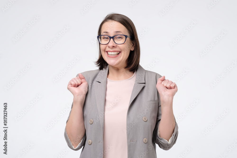 Successful woman looking very happy - isolated over a white backgorund